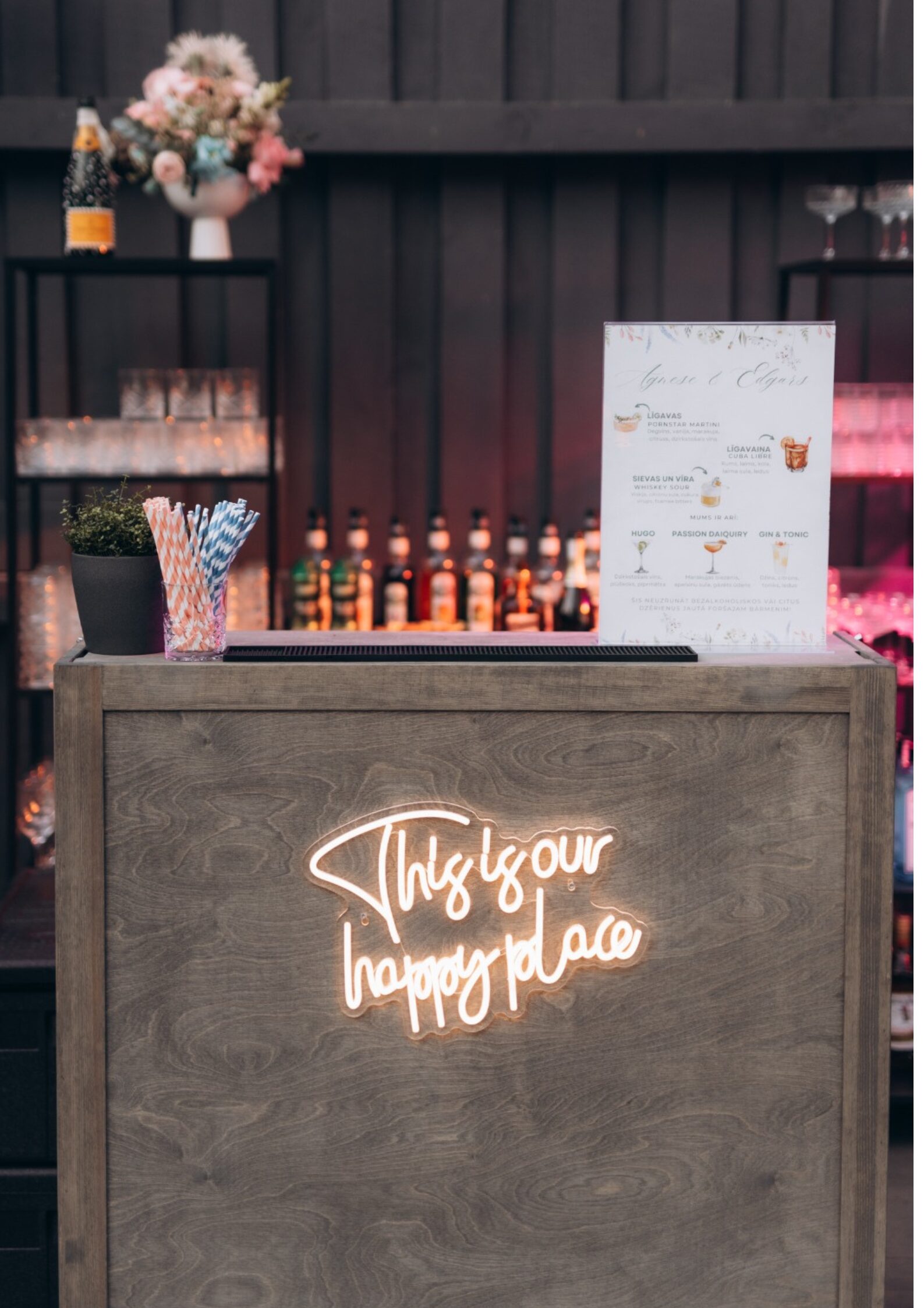 Neatkarīgi no tā, vai organizē kāzas, korporatīvo pasākumu vai privātu ballīti – pie mums atradīsi visu, lai bārs un pasākuma zona būtu gan funkcionāla, gan stilīga.